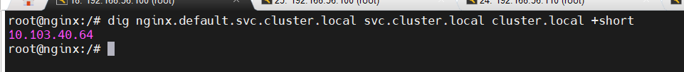 아래 내용은 nginx pod에서 nginx서비스의 FQDN query 결과