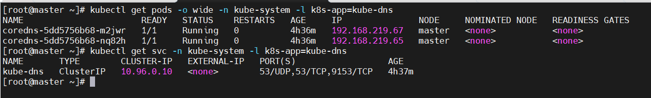 kubectl get pods -o wide -n kube-system -l k8s-app=kube-dns