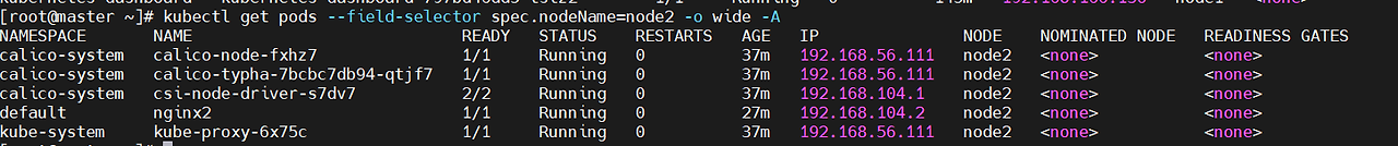 kubectl get pods --field-selector spec.nodeName=node2 -o wide -A