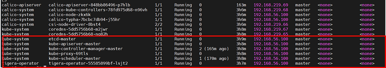 여기서 control plane (master) node에서 보여지는 pod 중에서